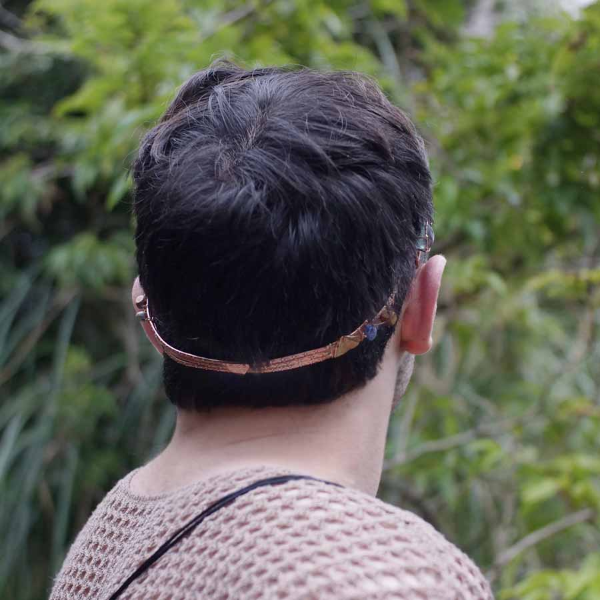 Madera natural, símbolo triángulo como representación del avance y el crecimiento, y aroma a romero para activar los sentidos.